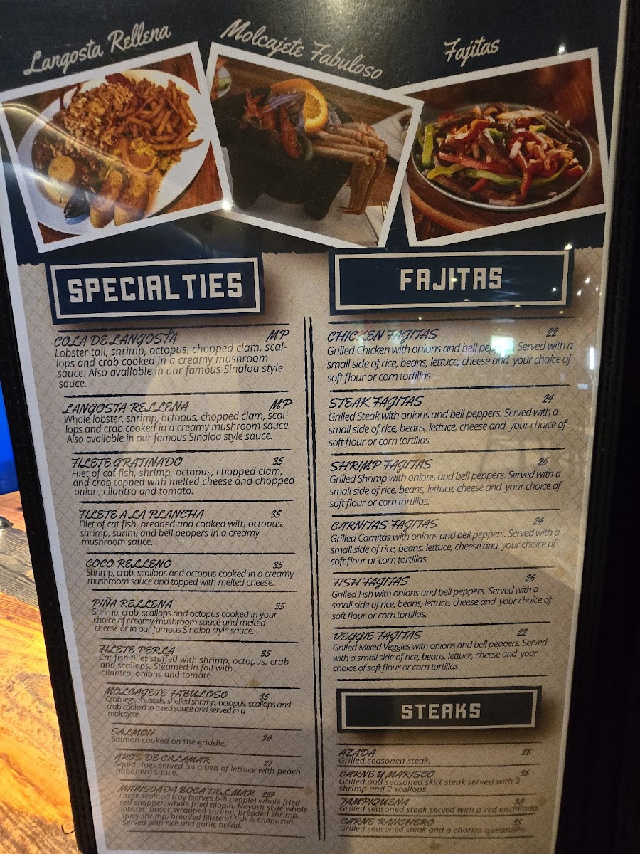 Steak or shrimp option, cheese, avocado, cucumber, gratinado cheese, and mozzarella cheese.