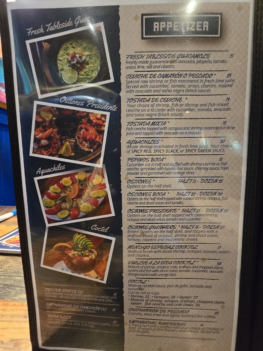 Mixture of shrimp, octopus, crab, scallops and chopped clams, oysters, and fish ceviche.